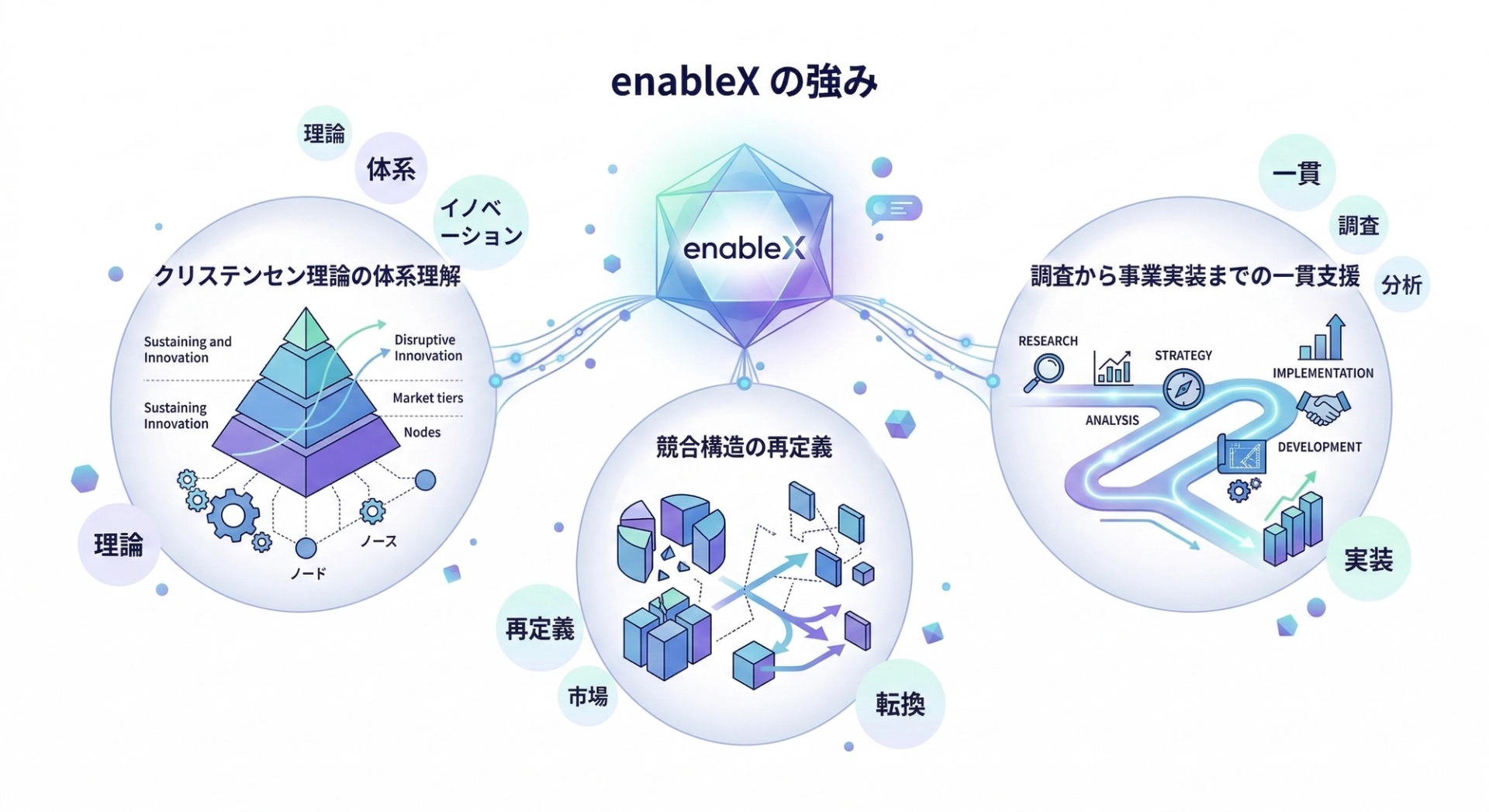 市場が成熟し、画一的なマーケティングはもはや無意味です。enableXは顧客の「状況と動機」を起点にイノベーションを起こすジョブ理論の正統な実践者として、理論と事業経験の両方の視点からプロダクト開発につながる重要なインサイトを提供します。